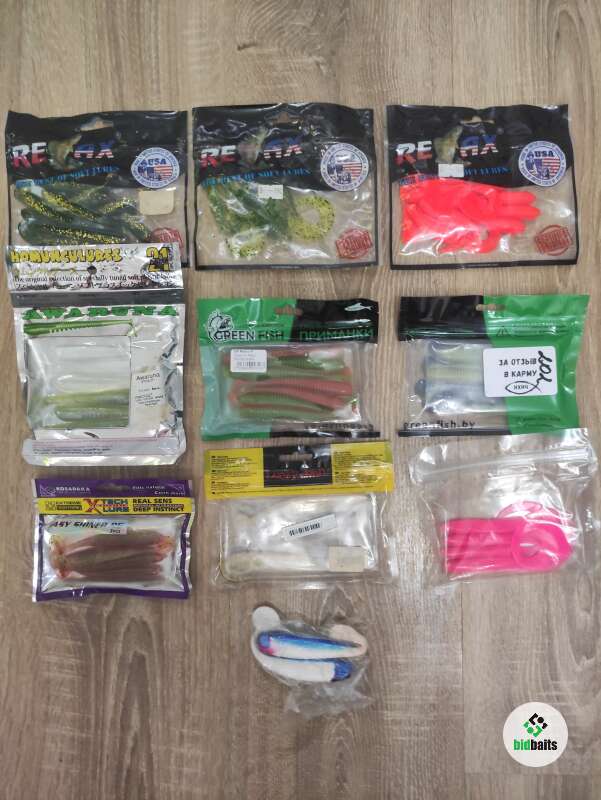 Силиконовые приманки. Ralax 3 уп.; Р21 Awaruna; Green Fish Swing Impact 4'' 2 уп.; Kosadaka Easy Shiner 85 mm; Lucky John LJ Minnow 4,5; копия угрей.Частично неполные пачки.