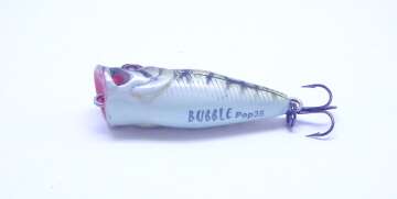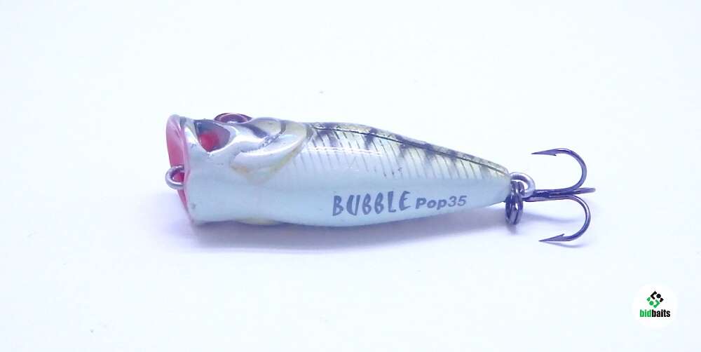 Bubble Popper- эксклюзивный попер с двумя отверстиями в полости рта, что позволяет этой модели имитировать звук кормящейся с поверхности рыбы. Относится к классу ультралайт и пользуется большой популярностью у любителей этого деликатного вида ловли. Наряду с хищной рыбой ловит и относительно мирные породы рыб: густеру, леща, карася, красноперку, чехонь. Акустический. Плавающий.