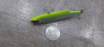 Состояние на фото - в этом случае затрудняюсь дать объективную оценку воблеру, как правило следы использования ярко выражены, может быть не всё хорошо с лкп,но видимых дефектов по функционалу не обнаружено