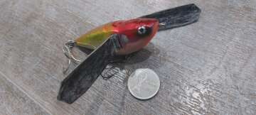 Состояние на фото - в этом случае затрудняюсь дать объективную оценку воблеру, как правило следы использования ярко выражены, может быть не всё хорошо с лкп,но видимых дефектов по функционалу не обнаружено