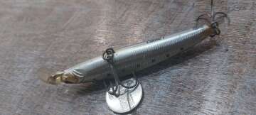Состояние на фото - в этом случае затрудняюсь дать объективную оценку воблеру, как правило следы использования ярко выражены, может быть не всё хорошо с лкп,но видимых дефектов по функционалу не обнаружено