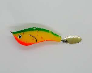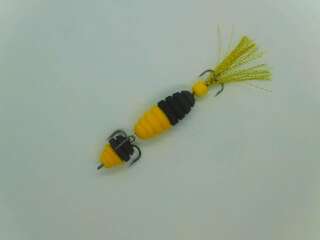 Гибридная поролоновая приманка. Очень мягкий мелкопористый поролон на двойнике Eagle Claw(загнутое жало) №2, силиконовый хвост Action Plastics. В окрасе присутствует флуоресцентная краска. Двойник слегка прижат к телу, что дает преимущество для ловли в корягах и не мешает реализации поклевок. Поролон живой, не печеный. Полностью ручная работа. Длина 9 см