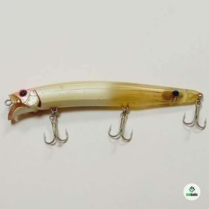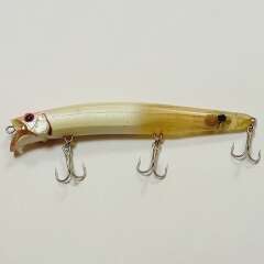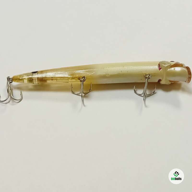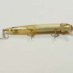 Плавающий воблер с системой дальнего заброса 128мм, 21гр. Состояние в целом хорошее, есть потертости и сколы лакокрасочного покрытия. Внутри следы попадания влаги. Петли пропитаны лаком, воду не пьет.