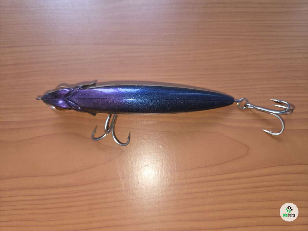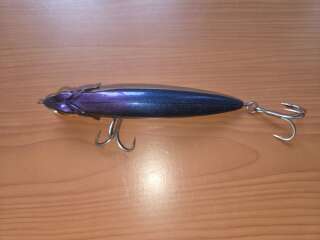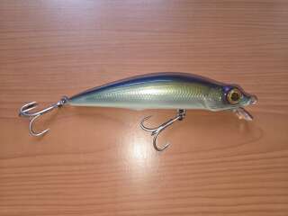 Раритетная джапанская вещица из начала 2000х в отличном состоянии. Особенностью является покрытие воблера имитацией кожи. То бишь мягким силиконом. Видимо преследовалась цель,чтобы осторожный хищник после хватки моментально не выкидывал приманку из пасти,не ощущал подвоха. Позже такое решение с покрытием корпуса воблера силиконом использовалось Zip Baits в модели Ryoma.