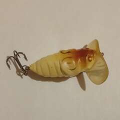 Плавающий кроулер 35мм, 3,7гр. Состояние хорошее, есть незначительные потертости лакокрасочного покрытия. Лопатка из твердого пластика поделтела, видимо старых выпусков.