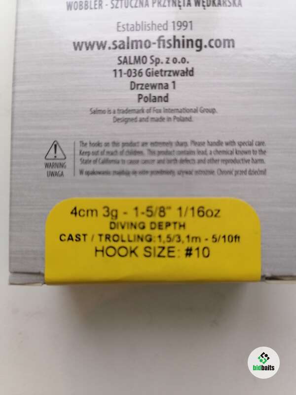 Новый Salmo Hornet 4F, цвет - SILVER BLACK RED (SBR), плавающий, светится в темноте. Длина - 4 см., вес - 3 грамма. Заглубление, указанное на коробке: 1,5/3,1 метра. По факту в районе 2-х метров.