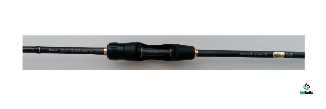 Spiral-X - спиральная намотка графитовых волокон, X-hi-power - перекрестная оплетка бланка высокомодульным углеволокном, катушкодержатель из углепластика CI4+, кольца SiC из нержавеющей стали, солидной вклеенной вершинки High response solid.