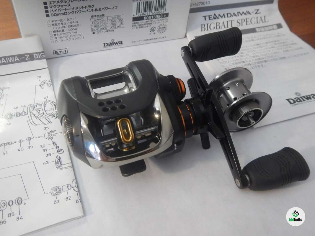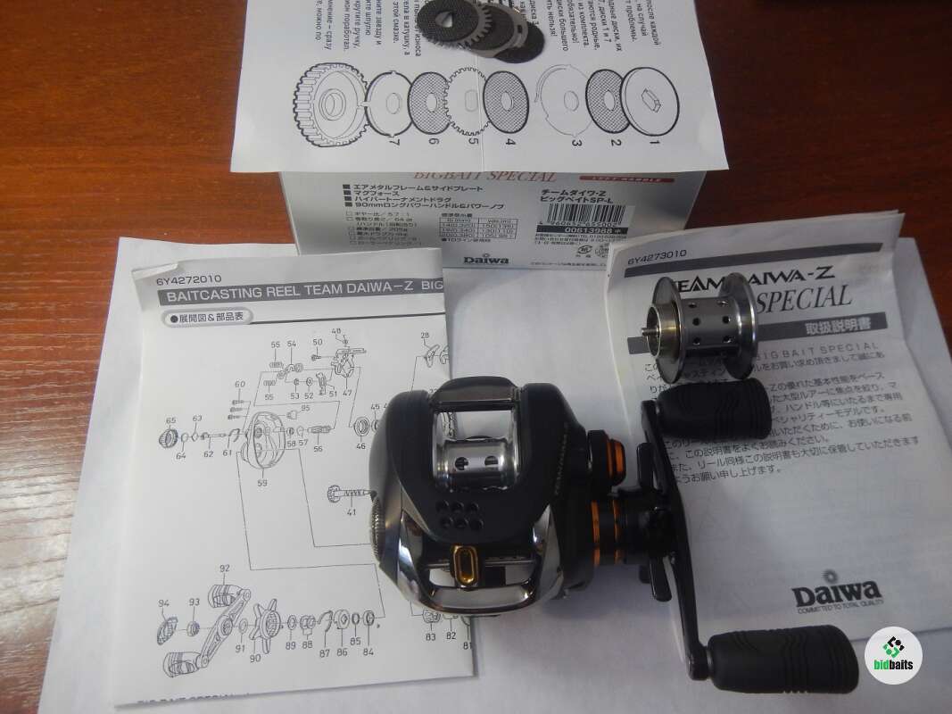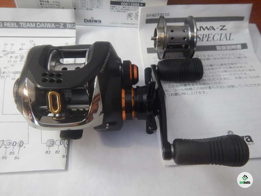 Продам Daiwa Team Daiwa-Z BIGBAIT SPECIAL ( TD-Z BBS ) - лучшая низкопрофильная катушка Daiwa за всю историю производства концерна Дайва и САМАЯ РЕДКАЯ (выпускалась всего с 2005-2007г), особенно в НОВОМ состоянии и в таком комплекте! Сразу из названия можно понять её целевое предназначение-ловля на крупные и тяжёлые приманки. Скажу честно, мне её подарили, но ловить такую красотку у меня рука так и не поднялась, да и было на что ловить кроме неё. Катушка магниевая, поэтому очень лёгкая 205 гр. Всё исполнение на высочайшем бескомпрмисном уровне, начиная от великолепнейших подшипников 10+1, заканчивая качеством покраски и фрезеровки. Ручка у неё тоже крупнее, чем у стандартных - 90 мм. Поверьте, это не современные безликие поделки которые все на одно лицо: что татула, что стиз, что зил. Прекрасна под джиг в нашем понимании и исполнении! Главная пара СТАЛЬ по БРОНЗЕ - она просто неубиваема и терпит веса вплоть до 100 грамм ЛЕГКО, и передатка 5,7:1 (64 см за оборот). Ход медовейший-гладкий. И среди всех катушек что у меня были именно эта Daiwa имеет самый лучший форм-фактор, в руке они удобнее всех. Она просто помещаются в ладони и никак не папрягают кисть, она удобнее последующих Zillion, не говоря уже о Z 2020. У меня были эти катушки и сравнить их "на ощупь" была возможность, поэтому и пишу: она самая удобная и ухватистая среди всех катушек что у меня были. Она стала прародителем всего семейства Zillion. Штатная шпуля 36 мм, идёт с фиксированным индуктором, и я приобрёл к ней новую и очень редкую шпулю от лимитированного Zillion Limited 100 edition уже с подвижным индуктором (под воблеры, вертушки) Можно купить шпулю AMO весом 7,2 гр (у китайцев есть шпули и легче!) то ловить можно и УЛ т.е. от 1гр до 100 гр этой катушкой можно пользоватся! В комлекте идёт поющий фрикцион, можете установить по желанию. Коллекционеры или настоящие ценители-рыболовы - комплект для вас. Хочется чтобы она попала в хорошие руки, она реально уникальна.Таких катушек больше нет и не будет.