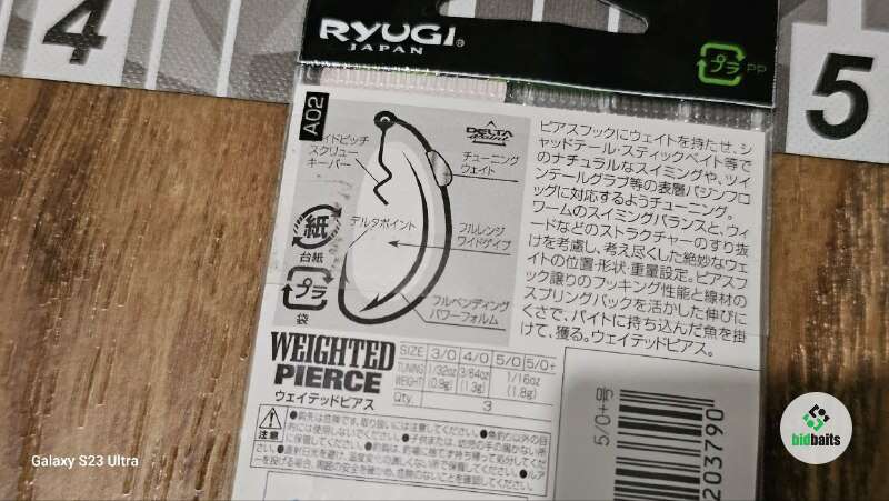 Крючки офсетные отгруженные со штопором Ryugi Weighted Pierce #5/0; 1.8г, 3шт. / Оригинал
