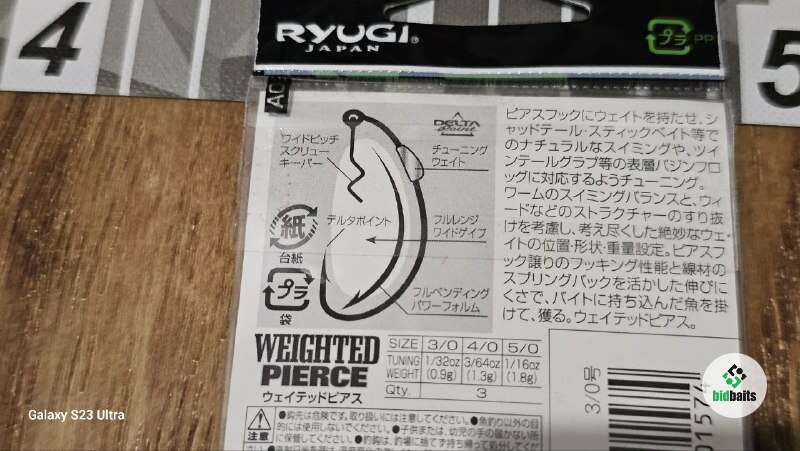 Крючки офсетные отгруженные со штопором Ryugi Weighted Pierce #3/0; 0.9г, 3шт. / Оригинал