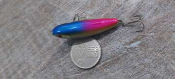 Состояние на фото - в этом случае затрудняюсь дать объективную оценку воблеру, как правило следы использования ярко выражены, может быть не всё хорошо с лкп,но видимых дефектов по функционалу не обнаружено