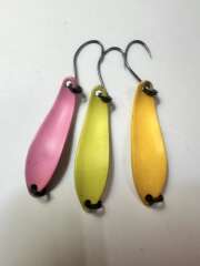 Оснащена безбородым одинарным крючком. Выпускается в весе 2,5гр, 4,0гр. и в большом количестве расцветок.