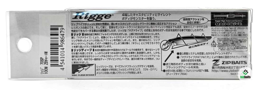 Воблер ZipBaits Rigge 70SP (70мм, 5,0г) цвет 100M ZB Chart M
