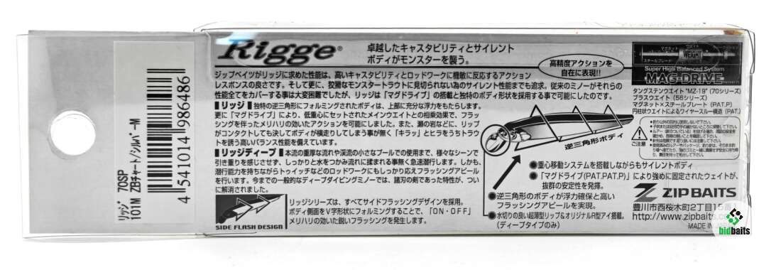 Воблер ZipBaits Rigge 70SP (70мм, 5,0г) цвет 101M ZB Chart/Silver M