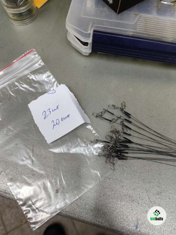 Авторские готовые поводки на хищника. Все сделанное из фирменных комплектующих. Мягкий материал Cannelle Supra-Flex на 9кг,застежки Smith, карабин Owner, обжимная трубочка AFW. Цена указана за одну штуку.