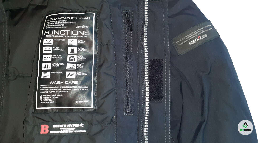 Костюм Shimano Nexus RB-162E имеет анатомический крой, который не сковывает движения вовремя активной рыбалки. Передняя часть куртки оснащена молниями для крепления спасательного жилета (только Шимано). Рукава имеют двойные манжеты, съемный капюшон, карман для мобильного телефона, утепленный воротник из флиса. Наличие ветрозащитной юбки в куртке. Удобные, не сковывающие движения штаны с высокой спиной дополнительно греют поясницу и защищают от ветра, регулировка талии. Застежка-молния внизу штанов с клапаном на липучке.
