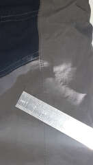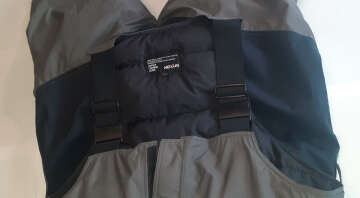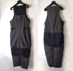 Б/у в отличном состоянии, но есть небольшие недочёты: маленький порез (1,5 см) на правой брючине ближе к внутреннему шву под коленом и в нескольких местах по краю растянулась резинка у комбинезона см. фото.