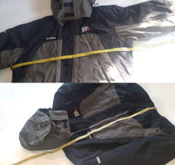 Фактический размер: Куртка: ширина м/ж плечевыми швами - 60 см, ширина по подмышечным швам - 70 см, длина рукава 65 см, длина по спинке от воротника - 75 см