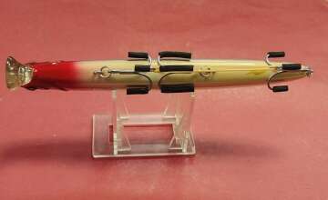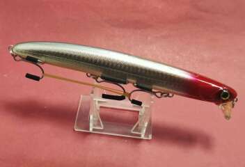 В хор. сост. Воблер куплен в составе набора в Японии, 100 % оригинал, с надписями и эмблемами, но бывшим хозяином довольно качественно у всех вобов, были переклеены или наклеены поверх другие глаза.