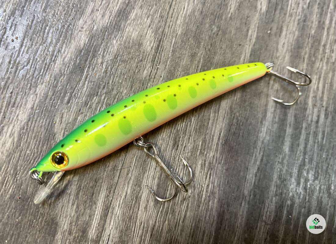 Воблер линейки Panish – это отличный вариант поисковой приманки для охоты на акватории большого размера. Приманка наделена положительной плавучестью, а рабочий горизонт находится на глубине от 30 до 80 см. Такие характеристики позволяют этому воблеру отлично справляться с мелководьем, протоками, перекатами и ручейками. Даже на быстром течении эта приманка сохраняет свою анимацию, благодаря вытянутому корпусу, характерному для категории минноу. Внутри этого корпуса – подвижные шарики, которые не только наделяют приманку лучшими лётными характеристиками, но и создают шумовой эффект. Размер воблера модели 85 F составляет 8,5 см., а весит она 6 гр.