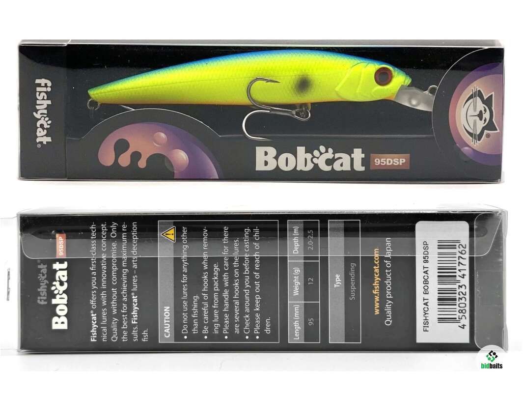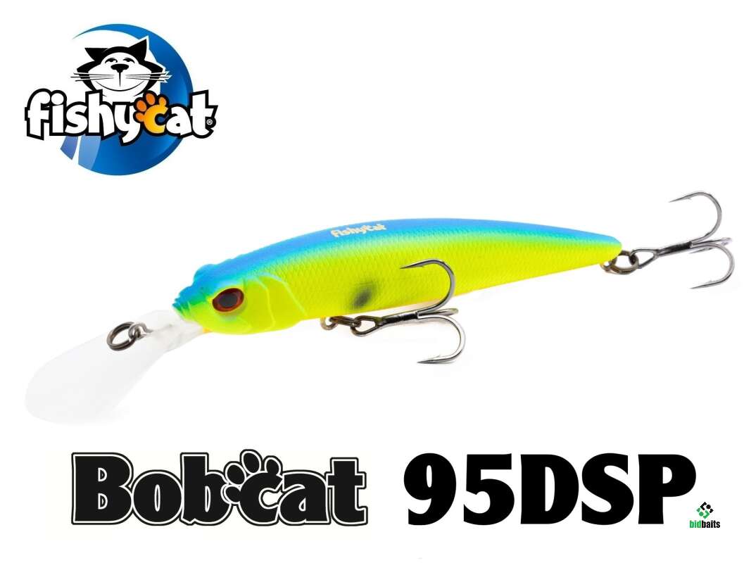 Воблер Fishycat BOBCAT 95DSP снабжен увеличенной лопастью, что позволяет заныривать на большую глубину. Имеет нейтральную плавучесть и при остановке остается на достигнутой глубине. Прекрасно отзывается на рывковую проводку, но и при равномерном ведении имеет собственную игру.