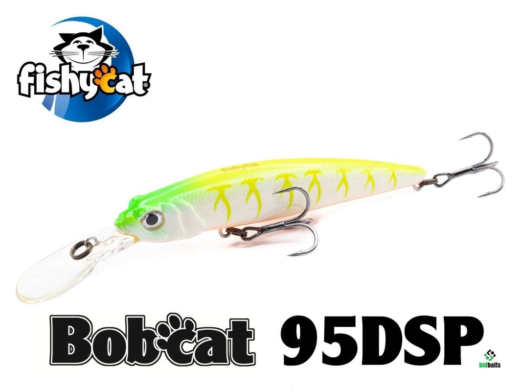 Воблер Fishycat BOBCAT 95DSP снабжен увеличенной лопастью, что позволяет заныривать на большую глубину. Имеет нейтральную плавучесть и при остановке остается на достигнутой глубине. Прекрасно отзывается на рывковую проводку, но и при равномерном ведении имеет собственную игру.