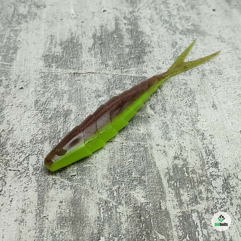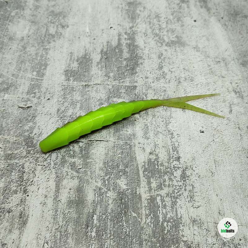 Gekoslug — приманка с округлой в сечении передней частью, рельефной «чешуйчатой» поверхностью и подвижным V-образным хвостиком.
