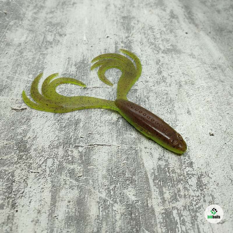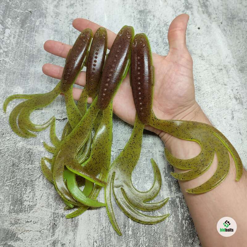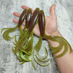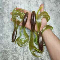 Эта универсальная "лягушка", которая одинаково уверенно ловит и щуку, и судака, отлично держится на джиг-головках, офсетных крючках со спиральными фиксаторами и работает как самостоятельная приманка, так и в роли трейлера к мышам-бактейлам.