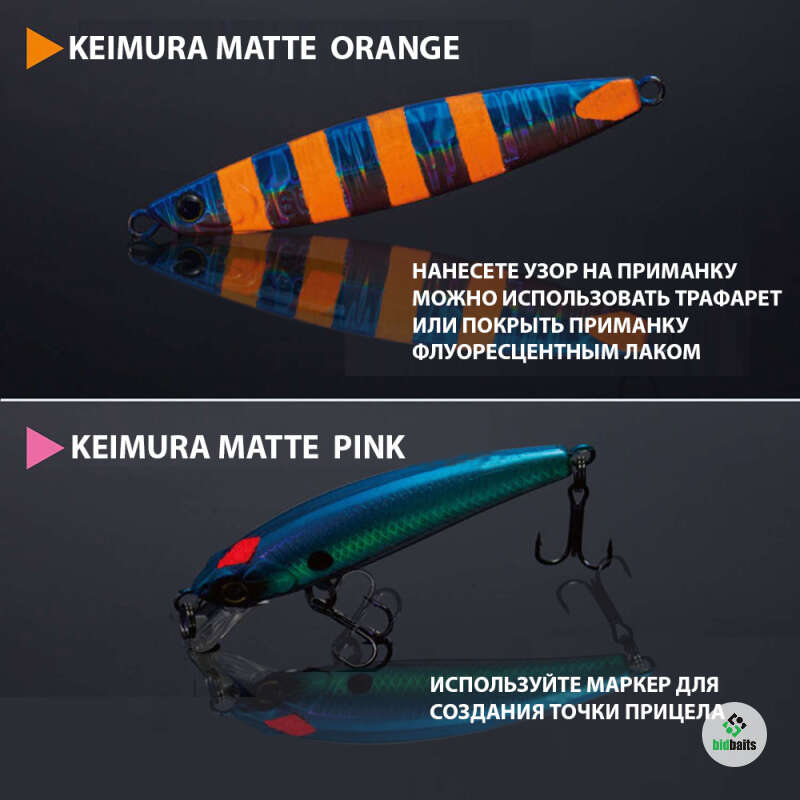 Shachihata Artline Iregui Marker — НОВИНКА 2025г. Специальный маркер для рыболовов от японского бренда Shachihata (линейка Artline). Он предназначен для покраски и тюнинга блесен, воблеров, силиконовых приманок, вибов — для нанесения кеймура (флуоресцентного свечения UV) и кастомных цветов прямо на рыбалке или дома. Покрытие отлично держится на приманке. Маркеры выпускаются как в матовом, так и глянцевом варианте.