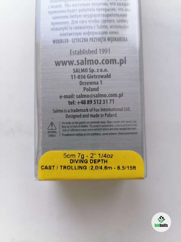 Новый Salmo Hornet 5F, цвет - HOLOGRAPHIC SUPER BLEAK (HRB), плавающий. Длина - 5 см., вес - 7 грамм. Заглубление, указанное на коробке: 2,0/4,6 метра. По факту в районе 3-х метров.