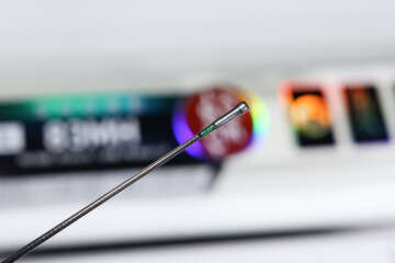 !!! Внимание! Это кальмаровое удилище имеет систему IL (In Line). Шнур продлевается через входное кольцо комлевой части и идет внутри бланка. Пропускное кольцо только одно! Выходное отверстие для шнура предусмотрено в верхней части удилища.