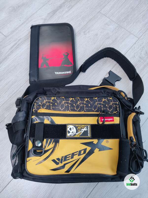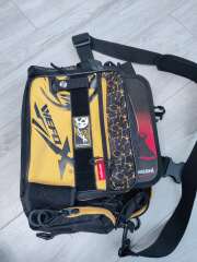 Сумка через плечо с поясной поддержкой на талии. Перешил крепление плечевого ремня для удобства. В отличном состоянии. Также комплектом идёт кошелёк для блесен, идеально подходящий под карман.
