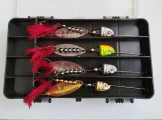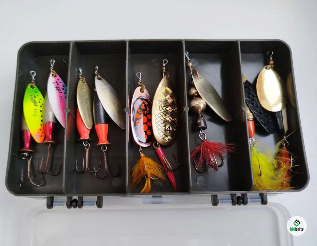 Комплект вращающихся блёсен в коробке.