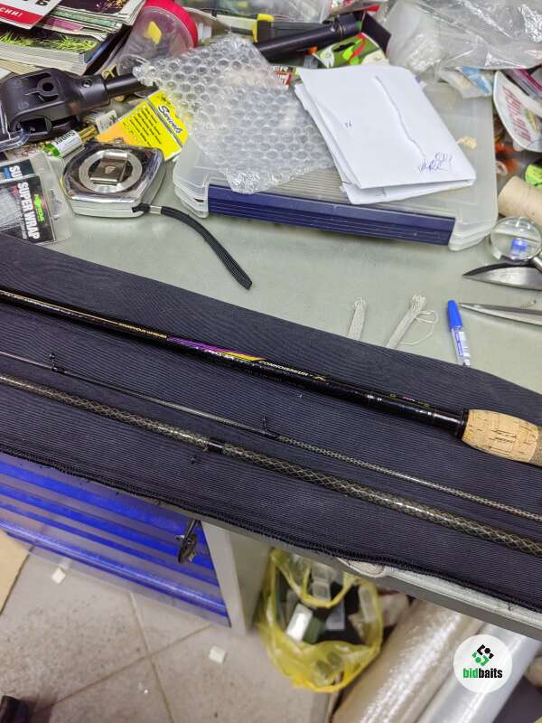Редкое английское матчевое удилище. Изготовлено из аморфного вискера. Бомбическое качество. Отлично держит рыбу и очень кидучее. Работает с весами до 25гр. Отличное состояние.