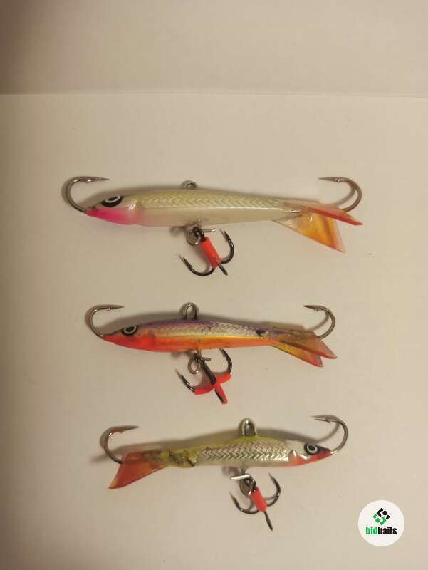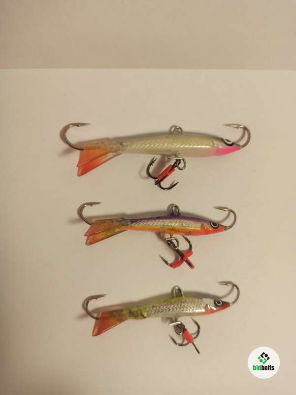 3 (три) балансира Karismax Vertical Jigger. 2 шт - 50 мм 10 гр (состояние хорошее) и 1 шт - 60 мм 15 гр (новый, без следов использования). Подвесные крючки заменены.