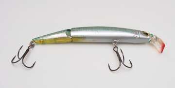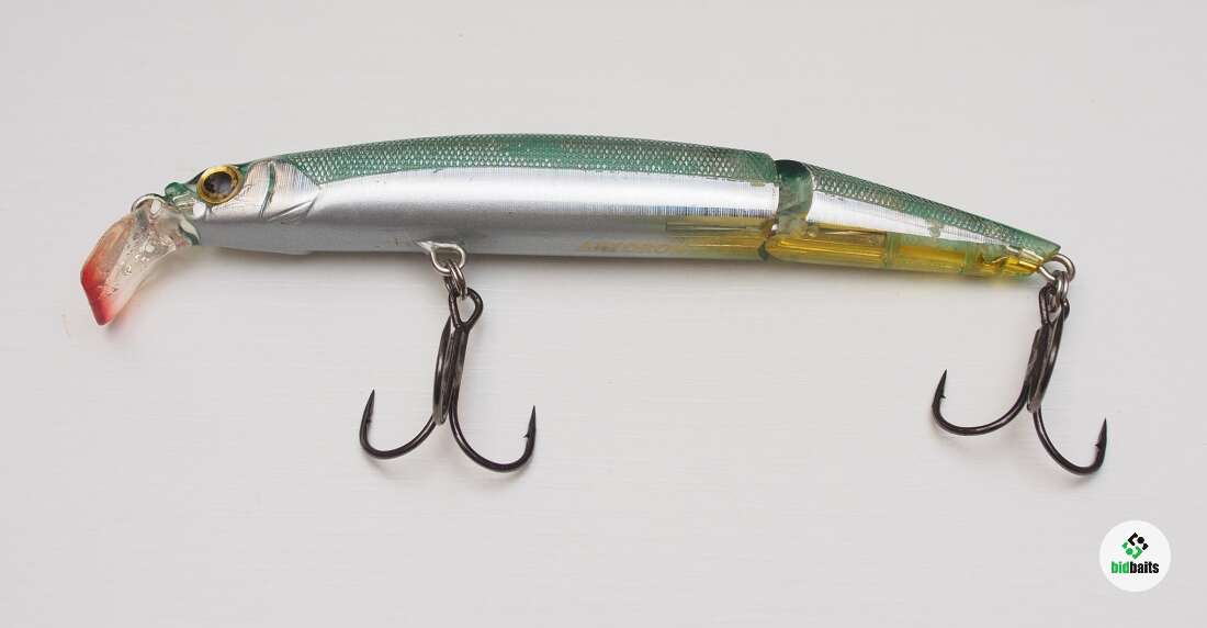 На забросе из первой (головной) части по каналу выезжает стержень цилиндрической формы, который упирается в углубление в хвостовой части. Воблер становится цельной неподвижной конструкцией. То есть задняя и передняя часть неподвижны друг относительно друга!