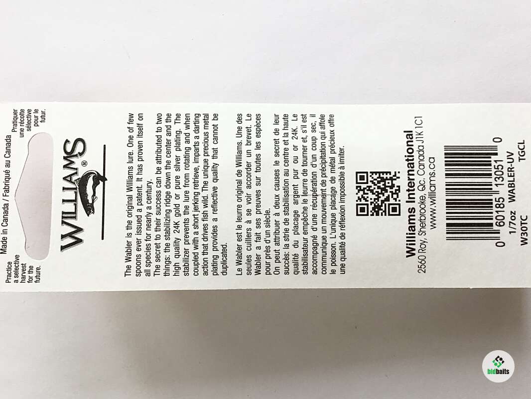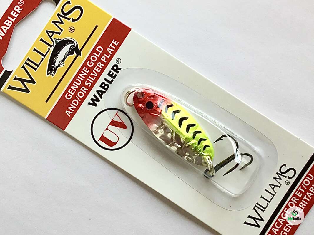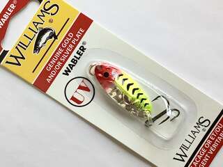 WILLIAMS Wabler cамая популярная и известная модель в линейке колеблющихся блесен, созданная более 75 лет назад. Отштампованная из высококачественной латуни, уникальная форма с ребром жесткости, запатентованная компанией Williams, покрыта тонким слоем благородных металлов - чистым серебром и 24-каратным золотом. Это ребро дополнительно стабилизирует блесну при проводке и позволяет работать с ней в широком диапазоне скоростей от стоячей воды до горных речек. А покрытие надежно защищает текстуру блесны от неблагоприятных условий.
