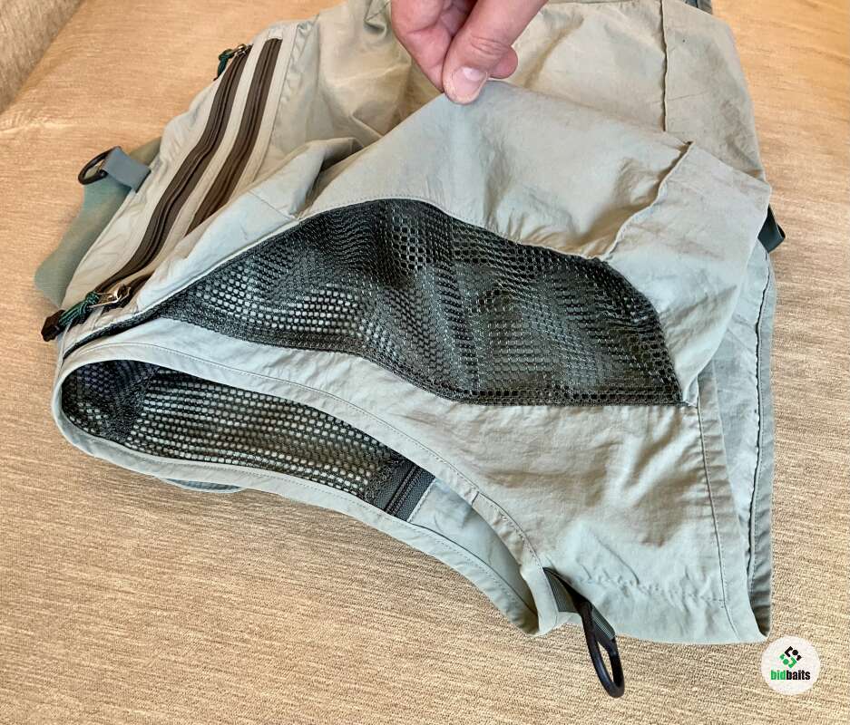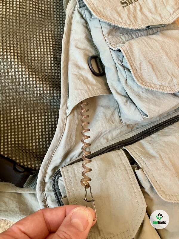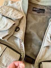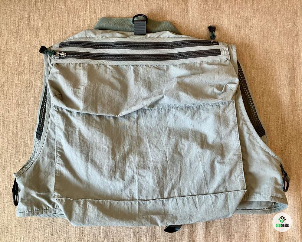 Жилет имеет множество карманов для хранения и удобного доступа к необходимым на рыбалке вещам.