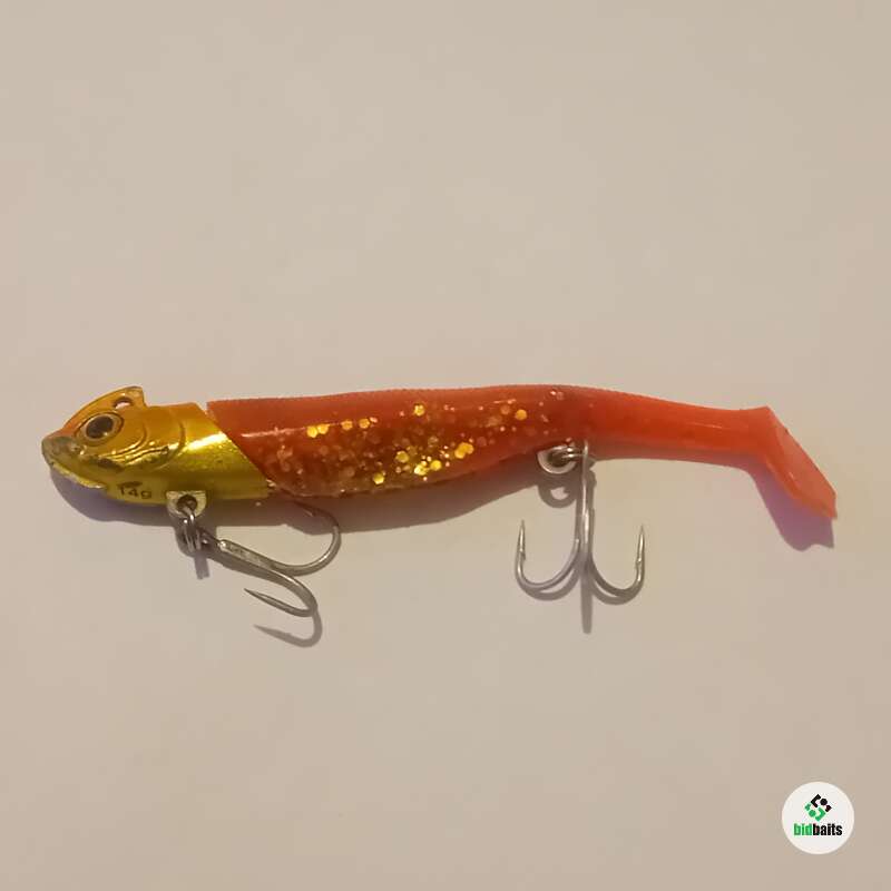 Джиг 14гр со стингерной оснасткой и силиконом 3". Состояние хорошее, есть сколы огрузки.