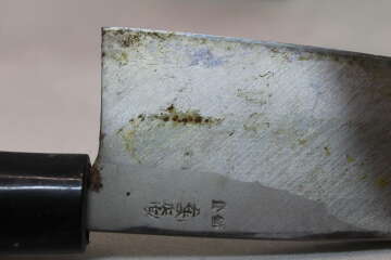 При изготовлении японских кухонных ножей кузнецы используют технологии, аналогичные тем, что применяются для самурайских мечей. >В клинке таких ножей используют два типа стали: твёрдую (хоганэ) и пластичную (джиганэ). С их помощью при помощи кузнечной сварки создают будущий инструмент. >Хрупкость твёрдой стали компенсируется пластичностью мягкой, что позволяет достигать фантастических характеристик режущей кромки (твёрдость РК около 64 единиц по Роквеллу). Японские ножи известны на весь мир и считаются лучшими .При правильной заточке ножи с легкостью доводятся до бритвенной остроты. Deba (出刃, дэба) — мощный разделочный нож с толстым обухом и клинком, сходным по обводам с Santoku. Этот тяжелый инструмент используют для разделки рыбы. Им отрубают рыбьи головы и делят тушку на части. Также этот нож применяют для разделки птицы, но им не рекомендуется работа с костями. В традиционном исполнении лезвие ножа Deba имеет одностороннюю заточку. Длина лезвия этого ножа — 16–20 см. Deba очень популярен и имеет много различных версий. Особой популярностью у западных клиентов пользуется вариант «риодэба» с двусторонней заточкой и современная версия с европейской формой рукояти «йо-дэба». В Японии используют вариант с кованым по технологии изготовления мечей лезвием, фактически без финишной обработки — тяжелый нож «атсу дэба». Для работы с некрупной рыбой существует небольшой и более легкий нож «ко-дэба». Версия с более тонким и удлиненным клинком называется «мироши-дэба» и используется для вырезания заготовок филе.