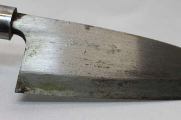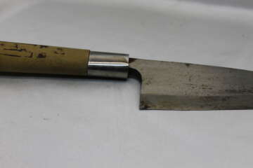 При изготовлении японских кухонных ножей кузнецы используют технологии, аналогичные тем, что применяются для самурайских мечей. >В клинке таких ножей используют два типа стали: твёрдую (хоганэ) и пластичную (джиганэ). С их помощью при помощи кузнечной сварки создают будущий инструмент. >Хрупкость твёрдой стали компенсируется пластичностью мягкой, что позволяет достигать фантастических характеристик режущей кромки (твёрдость РК около 64 единиц по Роквеллу). Японские ножи известны на весь мир и считаются лучшими .При правильной заточке ножи с легкостью доводятся до бритвенной остроты. Deba (出刃, дэба) — мощный разделочный нож с толстым обухом и клинком, сходным по обводам с Santoku. Этот тяжелый инструмент используют для разделки рыбы. Им отрубают рыбьи головы и делят тушку на части. Также этот нож применяют для разделки птицы, но им не рекомендуется работа с костями. В традиционном исполнении лезвие ножа Deba имеет одностороннюю заточку. Длина лезвия этого ножа — 16–20 см. Deba очень популярен и имеет много различных версий. Особой популярностью у западных клиентов пользуется вариант «риодэба» с двусторонней заточкой и современная версия с европейской формой рукояти «йо-дэба». В Японии используют вариант с кованым по технологии изготовления мечей лезвием, фактически без финишной обработки — тяжелый нож «атсу дэба». Для работы с некрупной рыбой существует небольшой и более легкий нож «ко-дэба». Версия с более тонким и удлиненным клинком называется «мироши-дэба» и используется для вырезания заготовок филе.