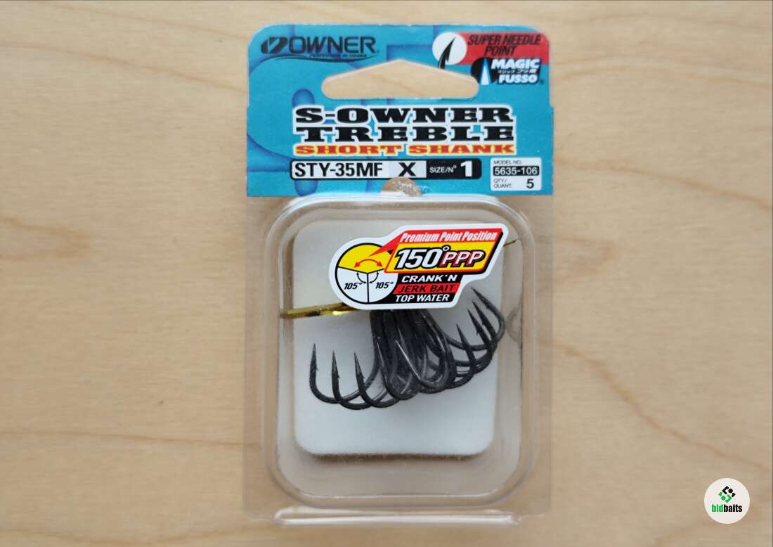 Конструкция крючков ориентирована на максимальную зацепистость при использовании с воблерами. При правильном оснащении жала крючка выступают за корпус приманки больше, чем у стандартных крючков - два поддева разведены между собой на 150 градусов. У обычных тройников поддевы разведены на 120 градусов. Фирменная заточка Owner, скользкое тефлоновое покрытие (Owner Magic Fusso) и короткое цевье сводит к минимуму холостые поклевки и сходы.