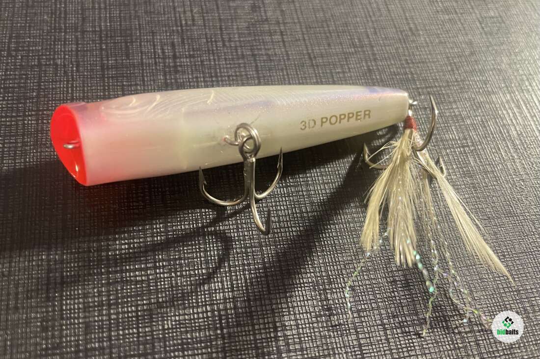 Поппер уверенно удерживает лидерство в охоте за такими пресноводными хищниками, как щука, окунь и жерех. Приманка изготавливается из надежного пластика и имеет голографическую прослойку внутри корпуса, что совместно с уникальной системой 3D Prism Finish, обеспечивает неповторимое преломление света при движении поппера в воде. Благодаря этой особенности поппер обладает феноменальным сходством с маленькой живой рыбкой, которая является излюбленной добычей для хищника. Поппер обладает отменными аэродинамическими качествами, что позволяет забросить его далеко от берега. Огрузка воблера зафиксирована в хвостовой части приманки двумя перегородками, и после приводнения приманка сразу же занимает необходимое для поппера положение головой вверх. Также роль огрузки выполняют два небольших металлических шарика, различных по размеру. Их наличие наделяет приманку хорошим балансом и улучшают дальность заброса, а также они создают акустический эффект во время проводки, что служит для дополнительной стимуляции хищника на атаку. Во время проводки поппер активно играет, создавая на поверхности воды мощные всплески и брызги, имитируя кормящегося малька или раненую рыбку. Для большей привлекательности приманки рекомендуется периодически снижать скорость проводки и разбавлять ее более продолжительными паузами между рывками. Поппер оснащается качественной, надежной фурнитурой и двумя мощными, острыми тройниками, отлично просекающими и удерживающими рыбу при вываживании.
