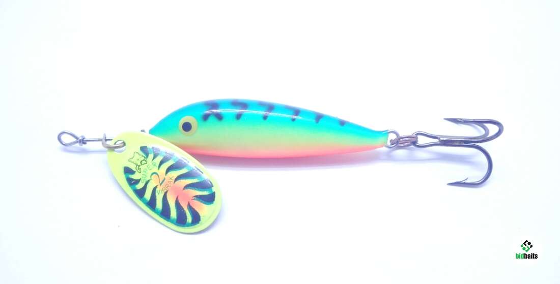 lue Fox Vibrax Minnow Spin отличается объёмным телом из бальсы, которое создаёт визуальный эффект натуральной рыбки. Лепесток из латуни, классической для Vibrax формы, вращаясь бликует в воде, привлекая внимание хищника, а слегка вибрирующее и покачивающееся тело усиливает притягательность приманки.