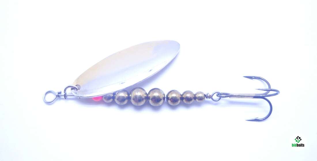 Высококлассное исполнение лепестка из латуни, скобы лёгкого вращения, цельных латунных шариков (не полых как у дешёвых имитаций) и оси из нержавеющей стали. У этой классической вращающейся блесны лепесток покрыт серебром или золотом с ювелирным качеством.