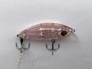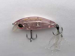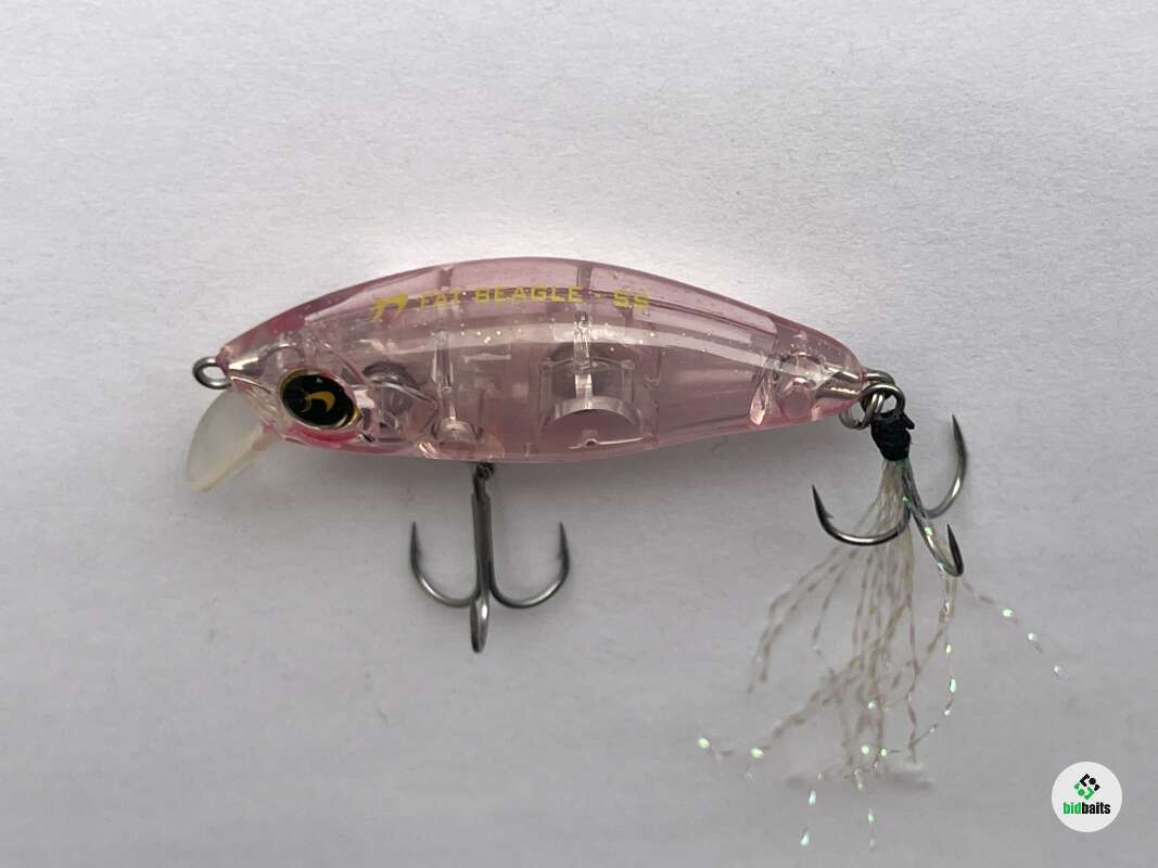 Megabass Nadar Fat Beagle SS Оригинал! Цвет: # Clear pink. Особенность Fat Beagle SS заключается в увеличенной массе, что упрощает выполнение заброса в более удаленные точки. Задний тройник замаскирован мушкой, плавные колебания которой сильнее поддразнивают хищников. Длина нитей увеличена, их можно подрезать при необходимости. Плавучесть у минноу отрицательная. Эксперты Megabass рекомендуют его для облавливания мест с быстрым течением. Модель обладает динамичной игрой с четким вобблингом (поперечными колебаниями). В корпусе спрятана огрузка, которая отвечает за стабильность приманки при проводке. Анимация очень проста: достаточно неспешной подмотки с периодическими остановками. Вес(гр): 4.2