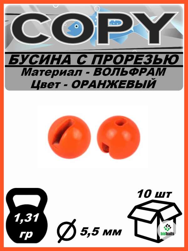 Бусина с прорезью Вольфрамовая Оранжевая 5,5мм (10шт)