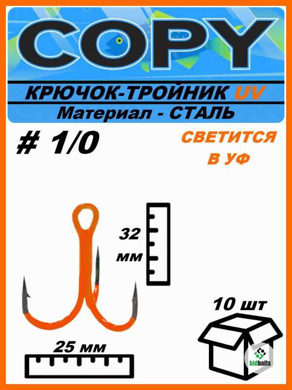 Крючок тройной светящийся UV оранжевый #1/0 (10шт)