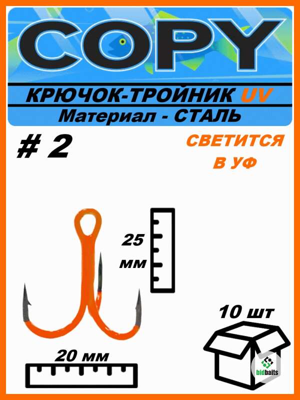 Крючок тройной светящийся UV оранжевый #2 (10шт)