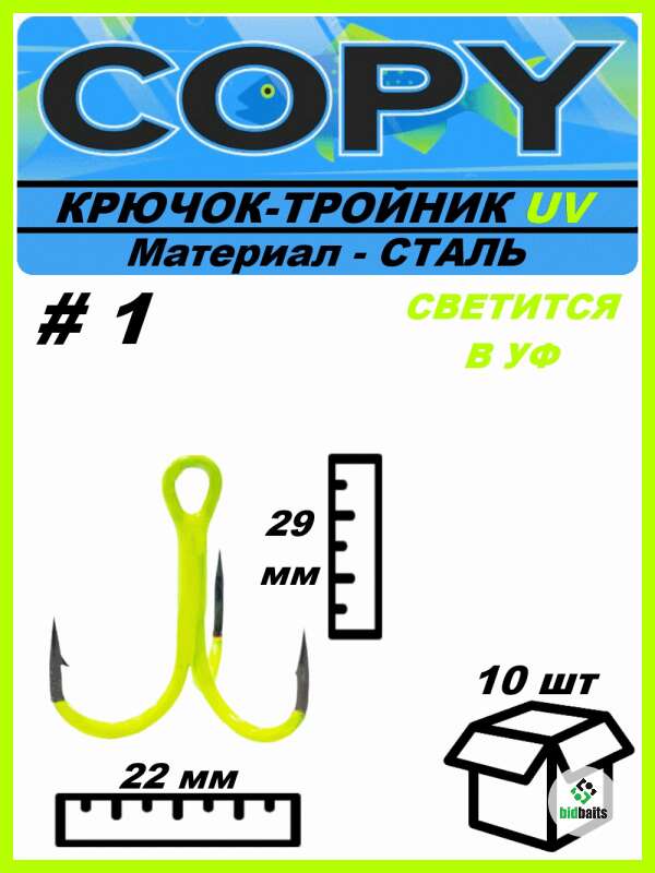 Крючок тройной светящийся UV шартрез #1 (10шт)